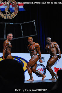 But Jaffy has call to a second round line up for compulsory posing, we all know he got a chance to be top five, therefore, we yell and specially Hugo Chan yell the most to notice Jaffy what is lacking on the posing, of course, at that moment, so big the stage, so bright the lighting, Jaffy seem forget the muscle part has to be tighten, this is very usual for every bodybuilders when they on new stage.